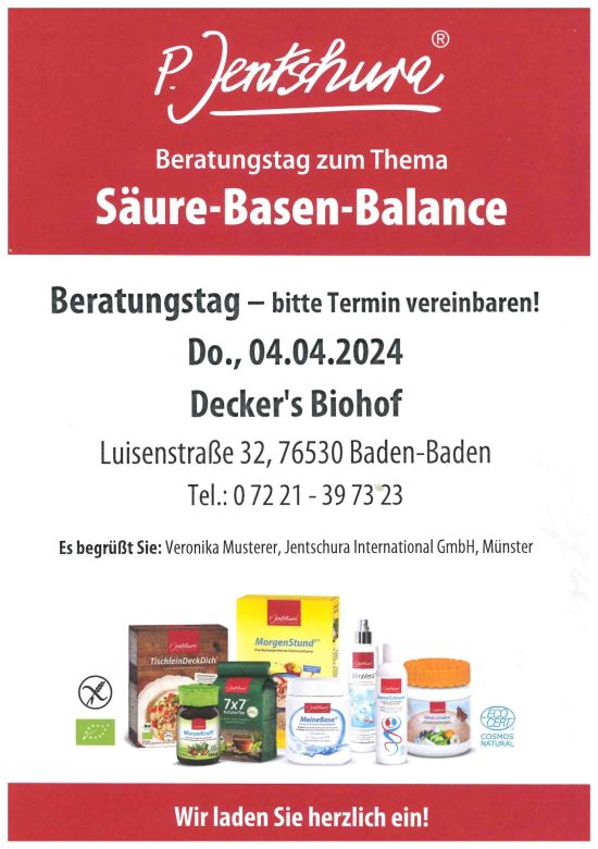 wir möchten Sie ganz herzlich zu unserem Beratungstag zum Thema Säure-Basen-Balance einladen.