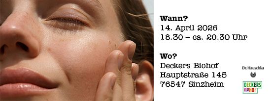 Lust auf eine bewusste Auszeit für Dich und Deine Haut? Dann ist der Wohlfühlabend mit Dr. Hauschka bei Deckers Biohof in Sinzheim genau das Richtige für Dich. Hier erfährst Du, wie Du Deine Haut im Einklang mit ihren Bedürfnissen und ihrem natürlichen Tag- und Nacht-Rhythmus gezielt unterstützen und nachhaltig pflegen kannst – und das in nur drei Schritten.
