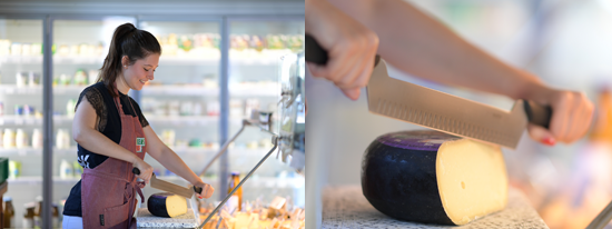 Von der Käsetheke in die Ökokiste - das erfordert Logistik und Finger-fertigkeit: Morgens um 6 Uhr muss es präzise und schnell gehen. Hartkäse, Weichkäse, Rotschimmel - welches Schneidegerät für welchen Käse, das wissen unsere Käsespezialistinnen aus dem FF. Käse-Schneide-Kunde: Jedem Käse sein Charakter und damit dieser erhalten bleibt, sollte man beim Schneiden auf das Werkzeug achten. Weichkäse, Frischkäse oder Blauschimmel können mit einem Käsebogen fein und präzise zerteilt werden. Beim Schneiden von Hartkäse und Schnittkäse kommt ein Käsebeil zum Einsatz. Um das Haftenbleiben des Weichkäses zu vermeiden, nutzt man ein spezielles Weichkäsemesser mit Aussparungen in der Klinge. Feine Parmesanscheiben gewinnt man mit einem Käsehobel. Hier finden Sie Deckers feinste Käsevariationen.