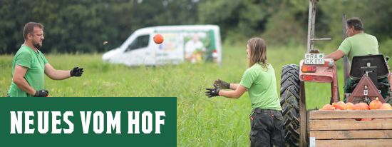 Im September ist Kürbiszeit: Auf Deckers Biohof werden die Hokkaido-Kürbisse geerntet und frisch in die Ökokiste gepackt. Mit seinem mild-nussigen Aroma ist der "Japaner" ein beliebter Speisekürbis und viel-seitig zu genießen. Besonders der hohe Gehalt an Beta-Carotin macht den Hokkaido unter den Kürbissen zur natürlichen Vitaminbombe.
