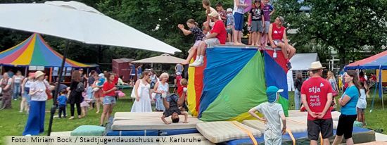 Engagement von Herzen: Bewegung, Spiel und Spaß standen bei den kleinen "Das Fest"-Fans im Vordergrund. Rund 2.000 Kinder und Jugendliche eroberten am Dienstag vor dem Festival die Günther-Klotz-Anlage und nutzten das vielseitige Angebot der "Spiel Mit!" Aktion vom Karlsruher Stadtjugendausschuss e.V. Wir haben mitgespielt und frisches Obst für Körper, Geist und Seele gespendet.