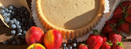 Die Obstkuchen-Saison im Garten ist eröffnet. Man kann den Torten-boden selbst backen - doch wenn´s mal schnell gehen muss, sind die Dinkeltortenböden vom Biobackhaus Wüst eine schmackhafte Alternative. So hat man mehr Zeit für das kreative Belegen.