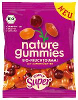 Zucker*; Glukosesirup*; Zucker*; 22% Fruchtsaft aus Fruchtsaftkonzentraten (Birne*, Erdbeer*, Orange*, Sanddorn*); Gelatine*; natürliche Aromen; Säuerungsmittel: Citronensäure; Geliermittel: Pektin; färbende Lebensmittel (Karotte*, Kürbis*, Holunder*, Apfel*); Überzugsmittel: Carnaubawachs*.| Energie | Fett | gesättigte Fettsäuren | Kohlenhydrate | Zucker | Eiweiss | Salz |