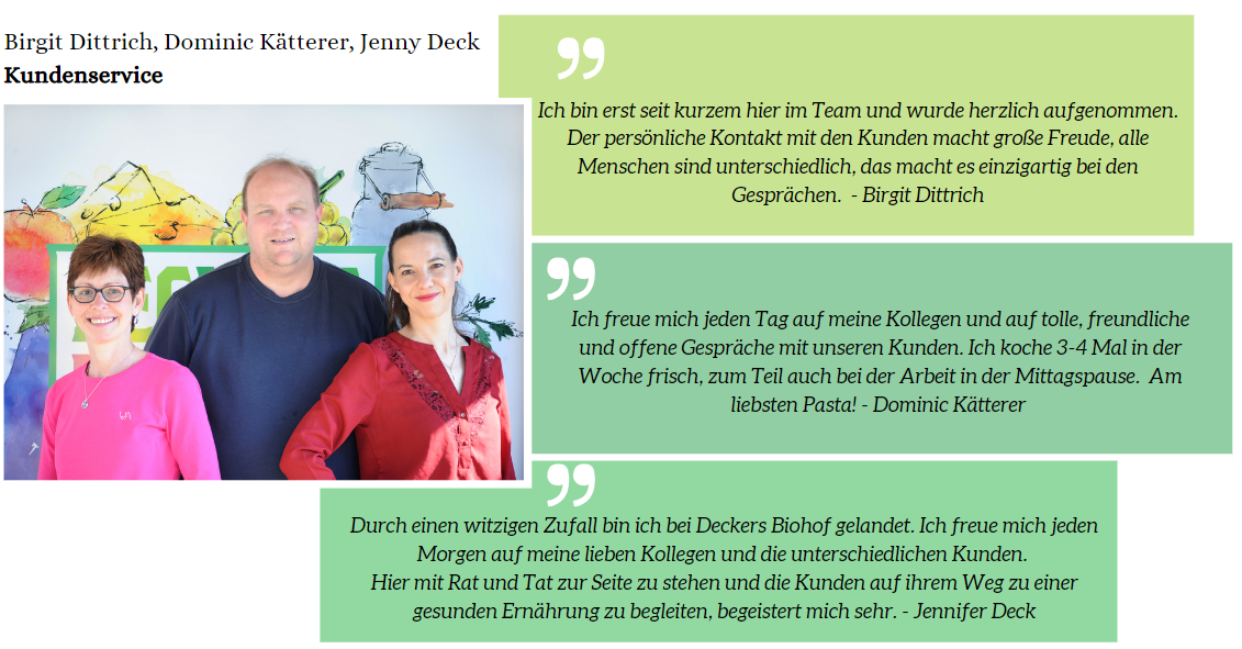 Das ist Deckers Biohof - Indoor Team